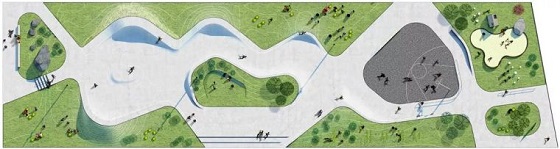 極限滑板主題公園的設(shè)計要讓人們在這座全新的滑板公園中享受滑板運動的樂趣。公園建立與周圍環(huán)境的聯(lián)系的同時又保有良好的功能性。